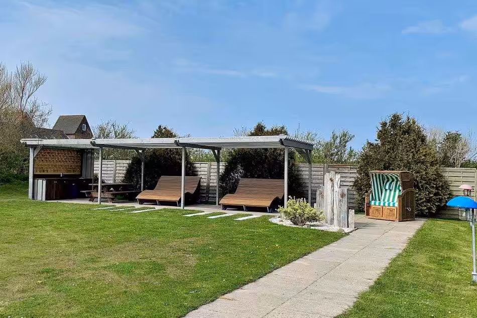 In the garden of Hotel Nige Hus you can expect two special XXL relaxation loungers, made by our owner Christian Griebel himself. The curved wooden loungers offer enough space for two to three people and invite you to relax and feel good together. In the midst of the idyllic nature of Neuwerk you can relax and enjoy the peace and quiet.