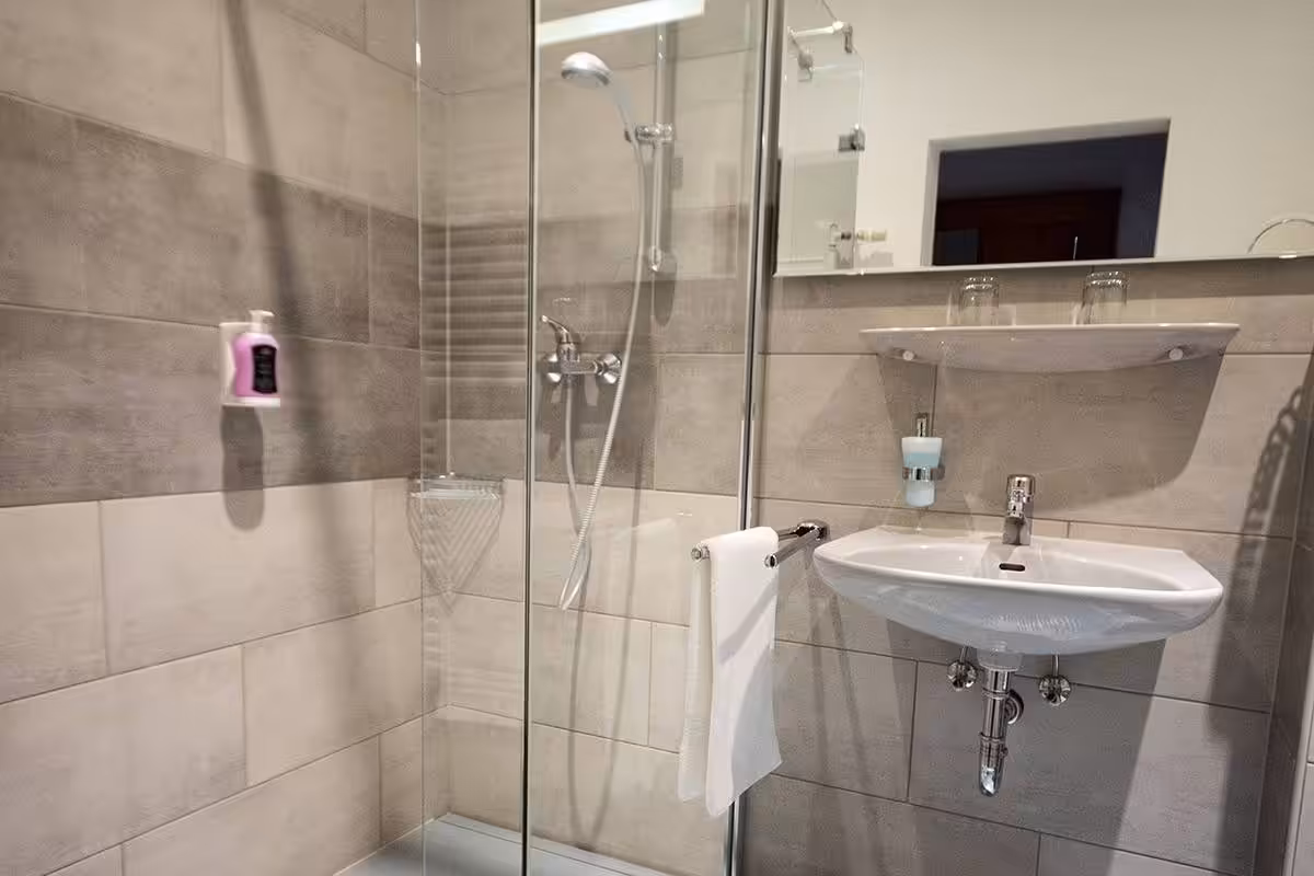 - Bathroom with WC and floor-level shower
