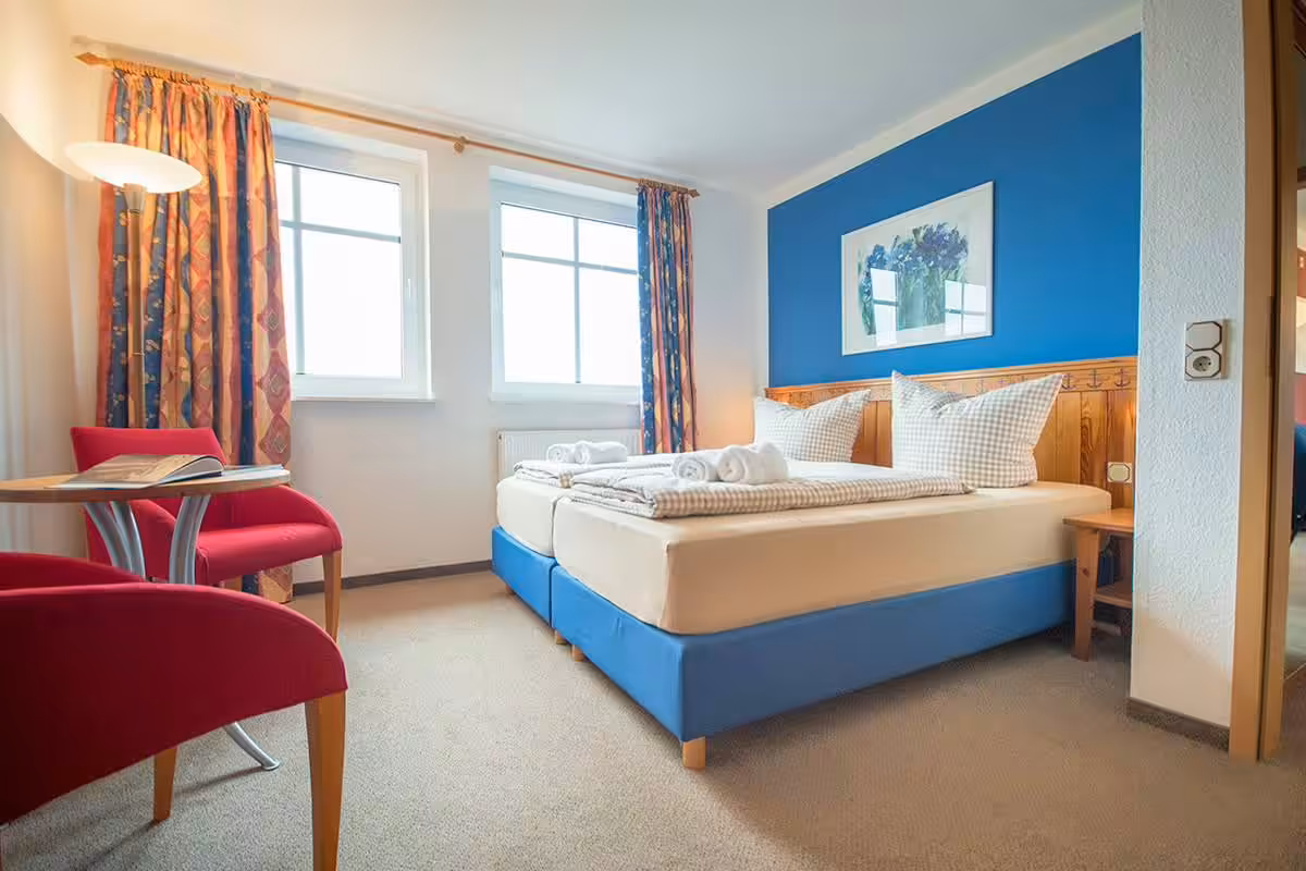 Thanks to continuous reconstruction and renovation works, all rooms and suites have their own character and individual styles. The friendly and bright interior invites you to linger and relax after a long walk. Enjoy the view of the mudflats and the North Sea or the green surroundings – in all our rooms & suites you will feel at home.
