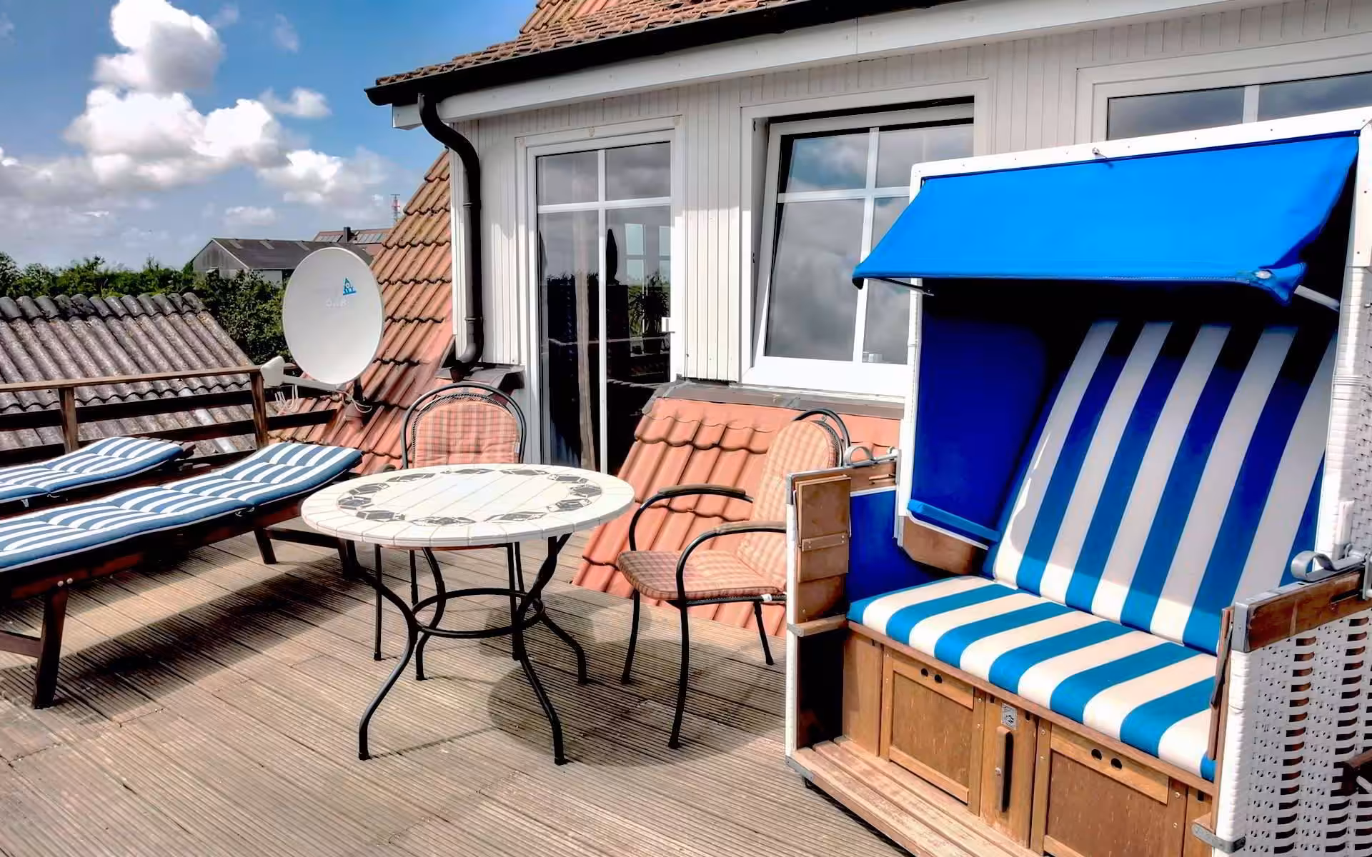 - Roof terrace with beach chair and deck chairs